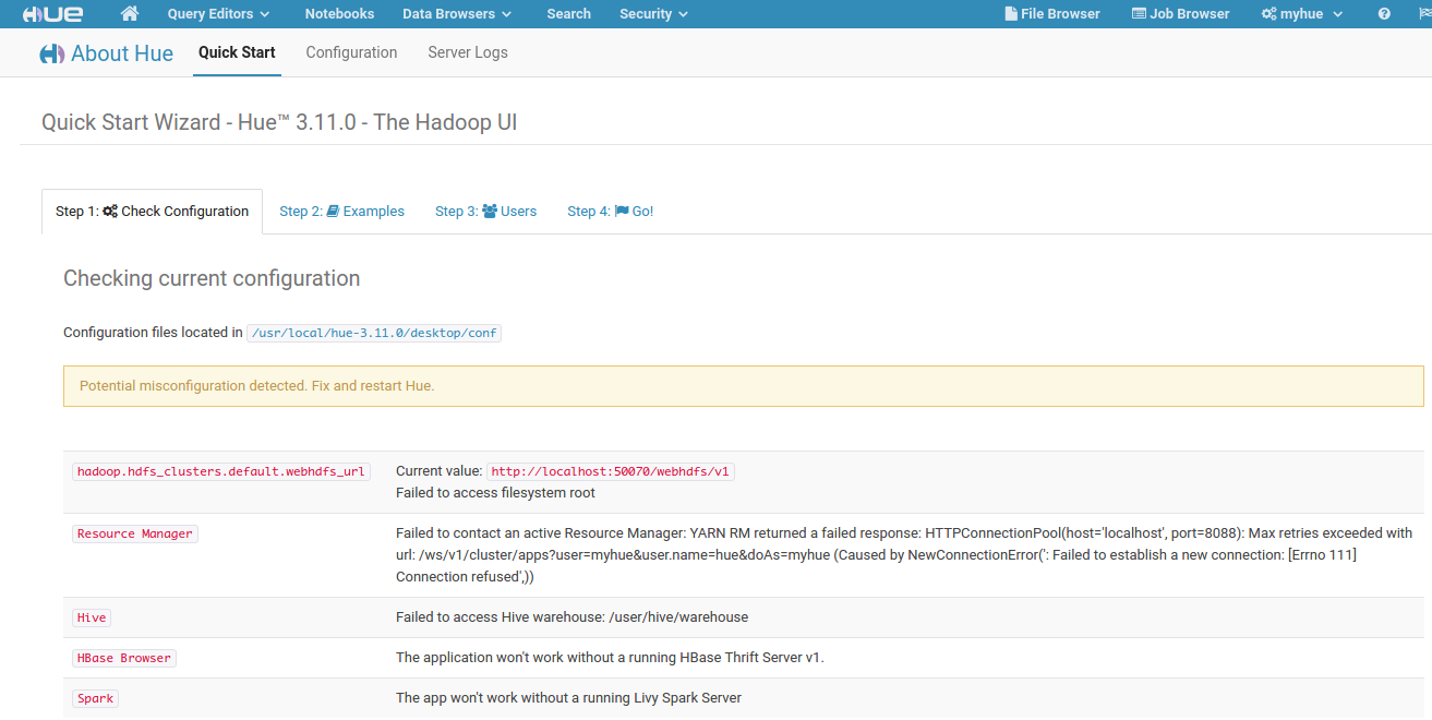 Hue提供了一个内置工具,测试所使用的配置是否正确。