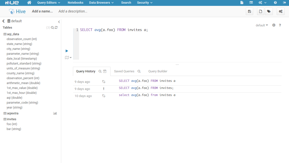 Hue为Hive提供了一个强大的脚本编辑工具,包括代码自动填充、元数据查询、元数据采样等,这里提交一个简单的Hive脚本,如图所示: