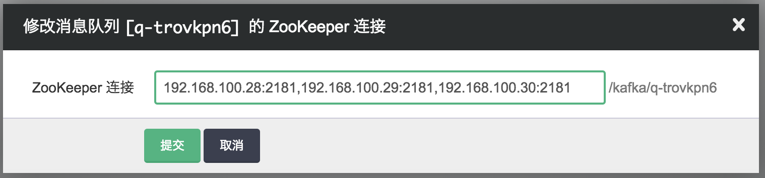 因 Kafka 集群极度依赖 Zookeeper,为了保障数据安全,该功能仅在 Kafka 集群关闭时才能使用。