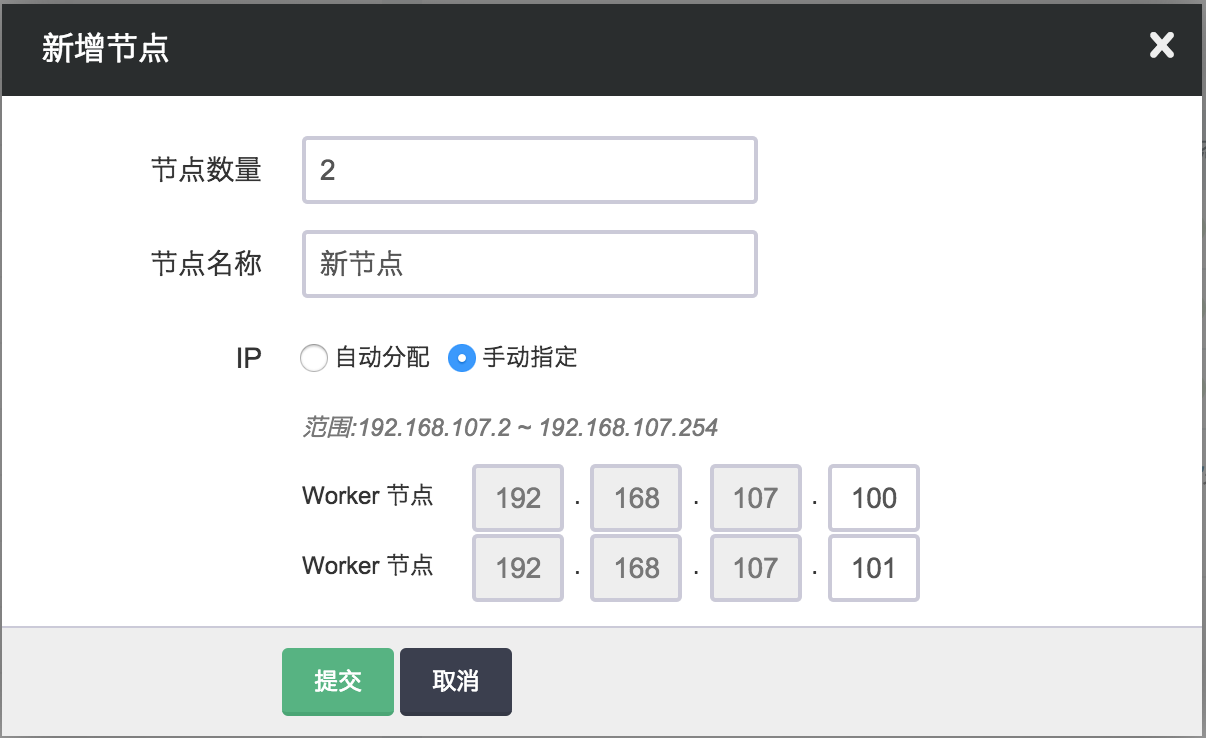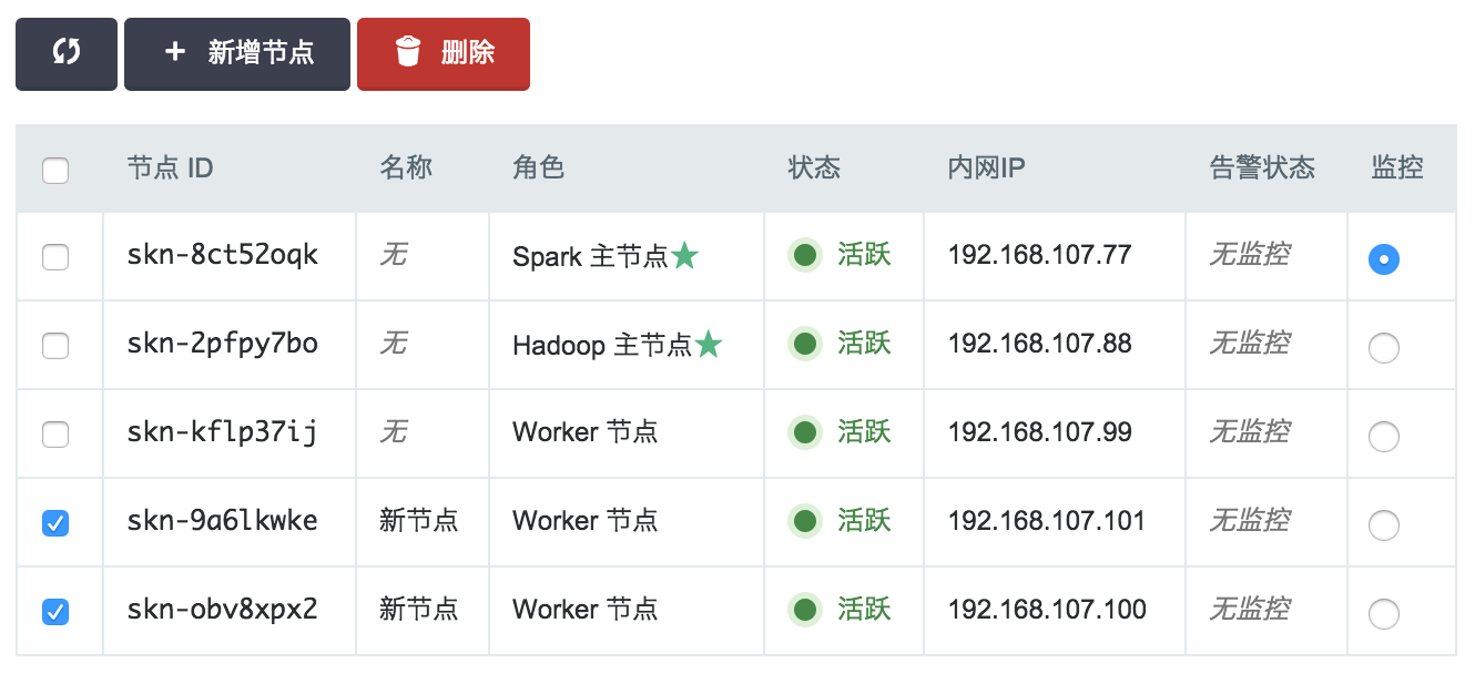 您可以在 Spark 详细页点击“新增节点”按钮增加 worker,可以对每个新增节点指定 IP 或选择自动分配。