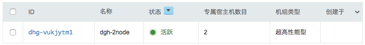 第二步:创建成功 当 专属宿主机组 创建完成之后,您可以查看专属宿主机组的基本信息。如图所示,当状态显示为“活跃”状态,表示该物理机组可用。
