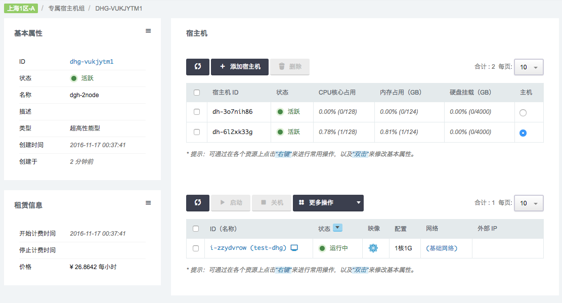 在青云上,您可以很方便的创建和管理一个专属宿主机组,并且可以对组内的物理机数量进行增加和减少。