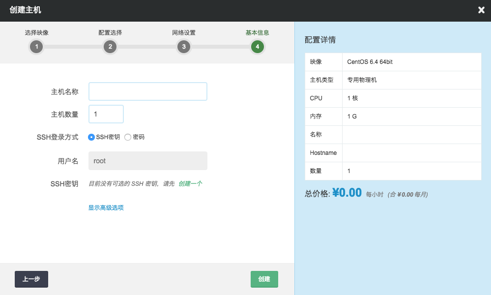 第一步:选择基本配置 在创建的对话框中,您需要选择专属宿主机类型、专属宿主机数量以及填写名称(可选)。