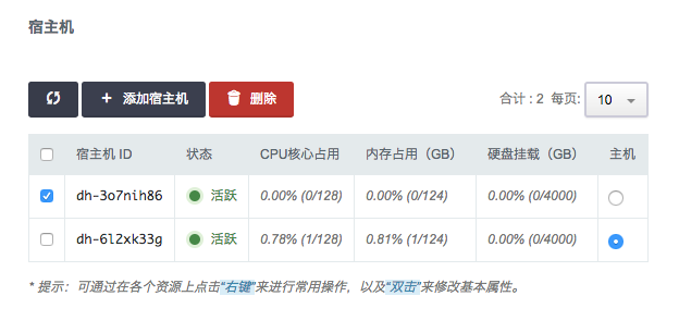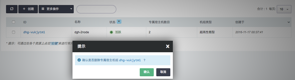 当专属宿主机数量过多时,可以减少专属宿主机的数量来节约成本,您可以在 专属宿主机 详情页选择需要删除的专属宿主机,然后点击添加“删除”按钮。
