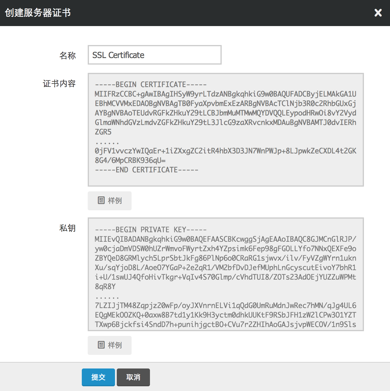 如图所示,”所在网络” 依旧选择 “基础网络”, 然后从 “后端服务器” 的下拉菜单中选择我们已经配置好的 web server,”端口” 填 “443”,然后点击提交。