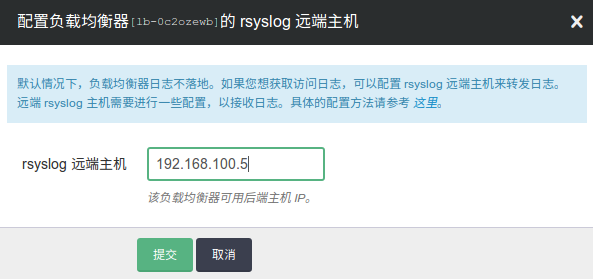 准备好主机以后,在青云控制台,右击负载均衡器,选择“配置rsyslog”,输入主机IP,并应用修改就可以生效。