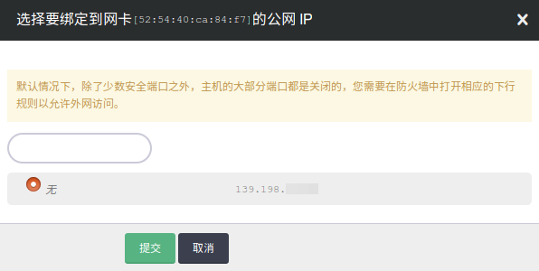 绑定防火墙。每个网卡可以有自己独立的防火墙策略,需要绑定防火墙时,从网卡视图,右击网卡,选择“修改防火墙”。为了使用方便,VPC主机和网卡默认都不绑定防护墙。当网卡绑定了公网 IP 时,系统会自动给网卡挂载防火墙,来保护业务安全,网卡按如下规则选择防火墙: