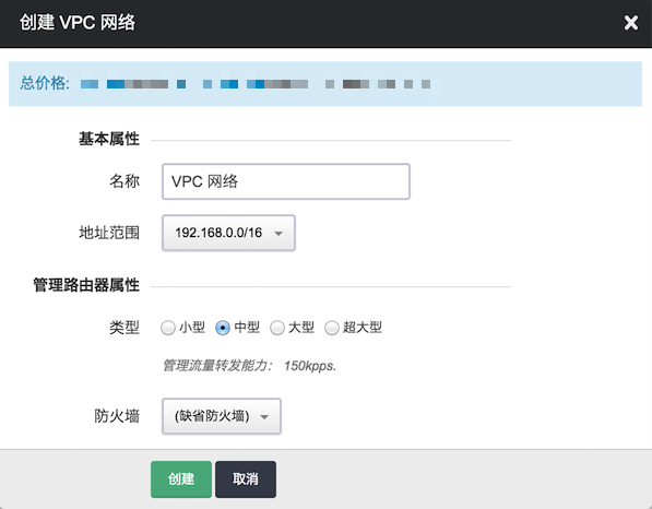 类型: VPC 网络的管理路由器类型,不同类型可支持的管理流量转发能力不同,可根据自己的业务特点及需求进行选择,对于已创建好的 VPC 网络来说,也可以在关闭 VPC 网络之后进行修改。
