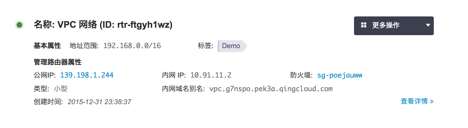内网IP: 管理路由器的内网 IP 地址,用于从青云内网访问管理服务。