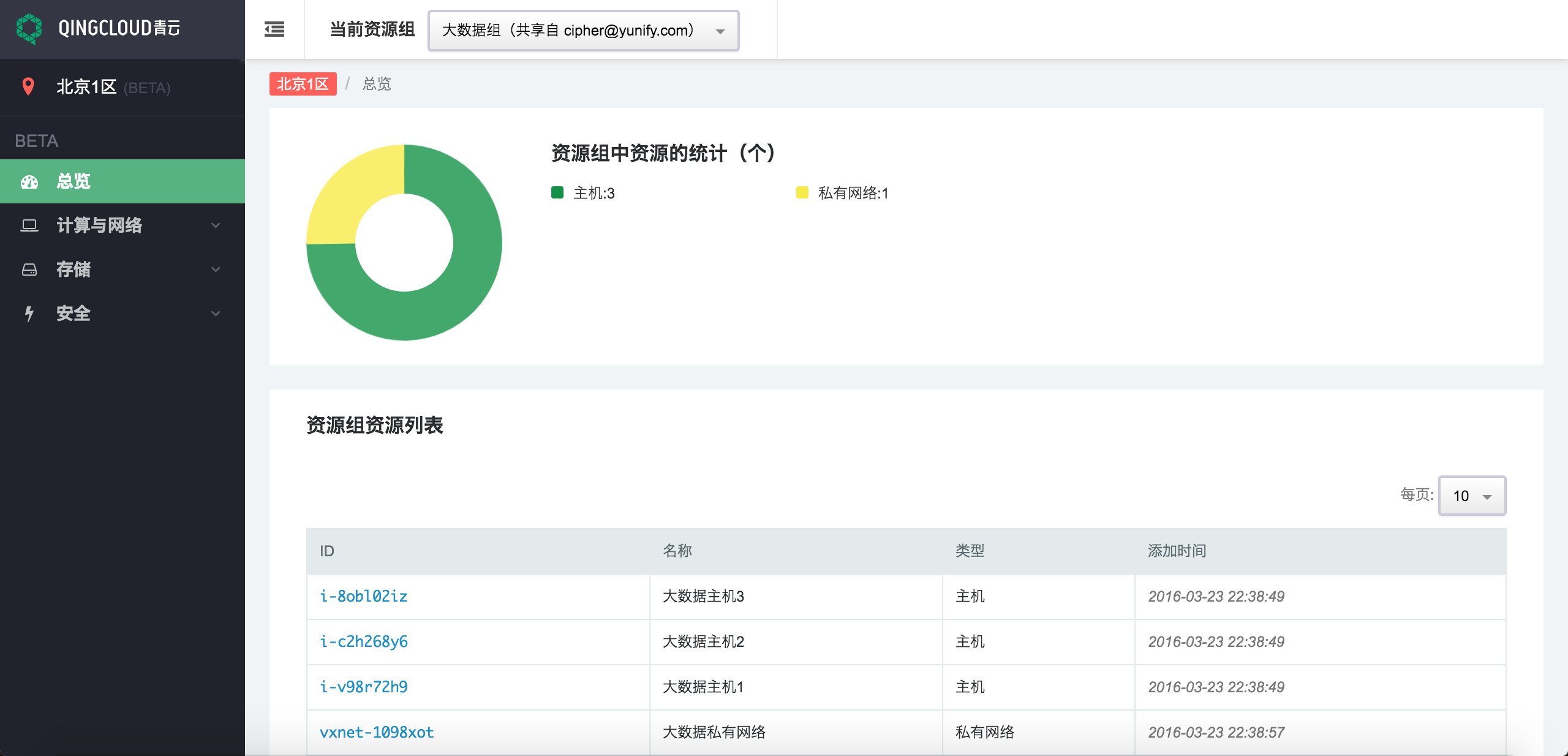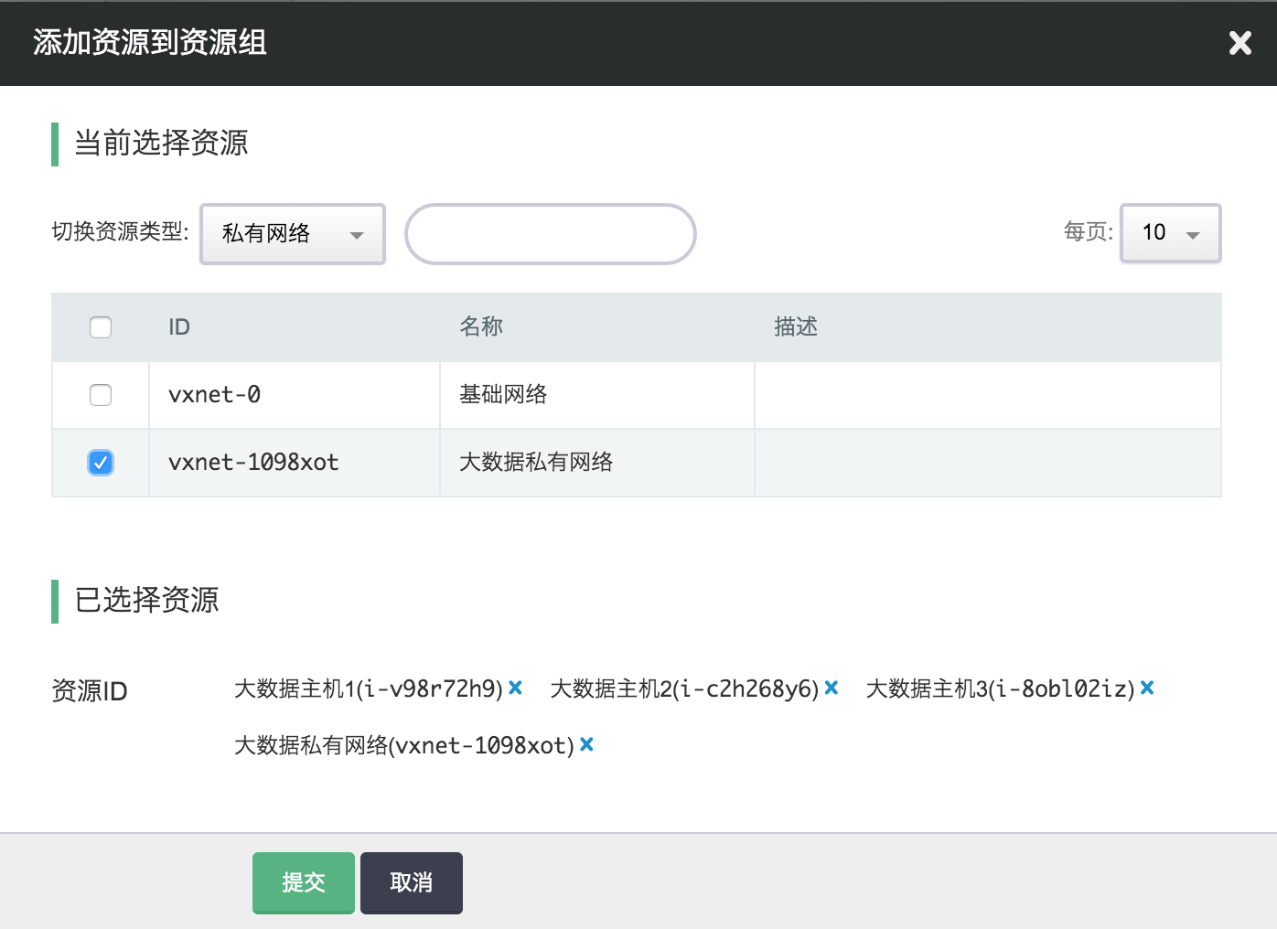 并把跟大数据业务相关的资源加入到该 RG 中,如主机、路由器、私有网络、公网 IP、硬盘等。