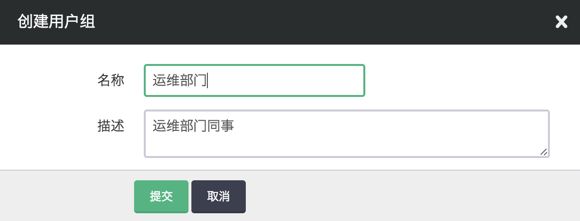 用户组可以按照部门来进行划分,常见如:开发组、运维组。或者根据公司组织架构,细分为:大数据开发组、API功能模块开发组等。