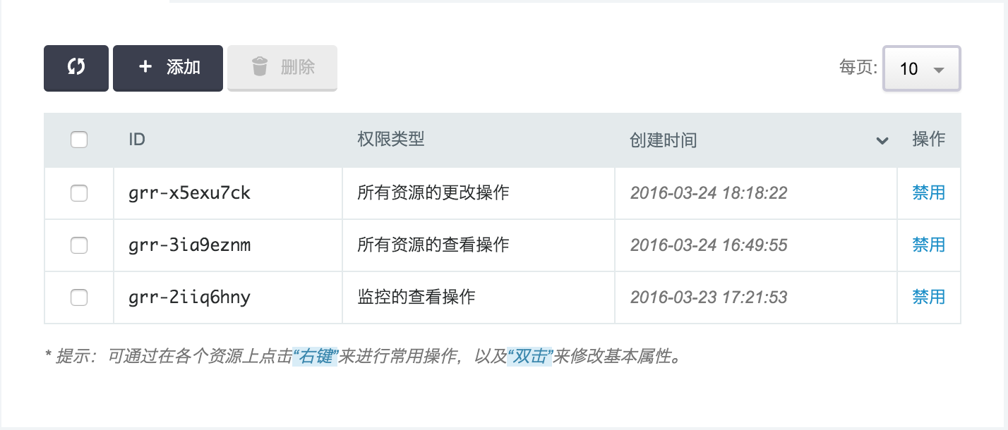 创建完 GR 后,会自动添加两条 “监控的查看操作” 和“所有资源的查看操作” 的规则。 这里只是为了演示添加操作。