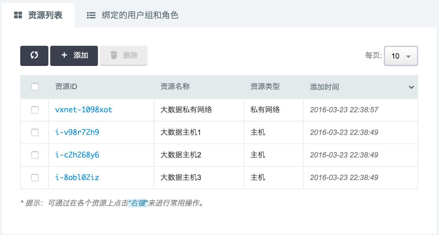 添加完后,可以看到这个 大数据组 这个资源组里面的所有资源列表: