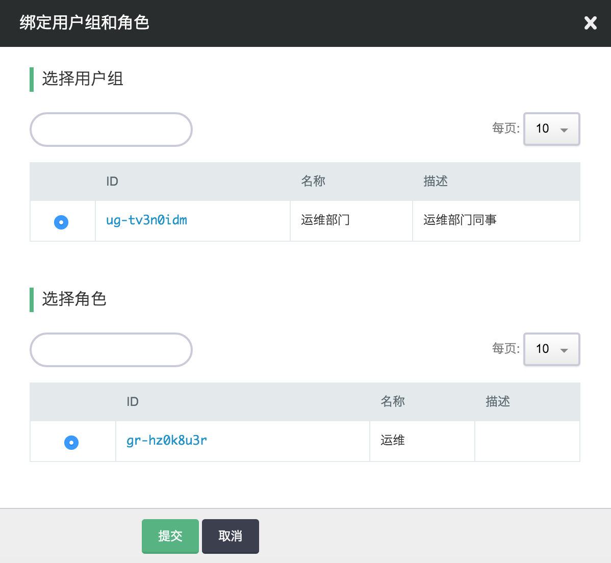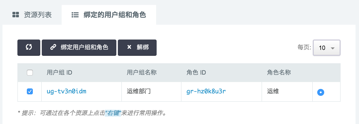 一个用户组对一个资源组的操作权限是由角色来定义的。