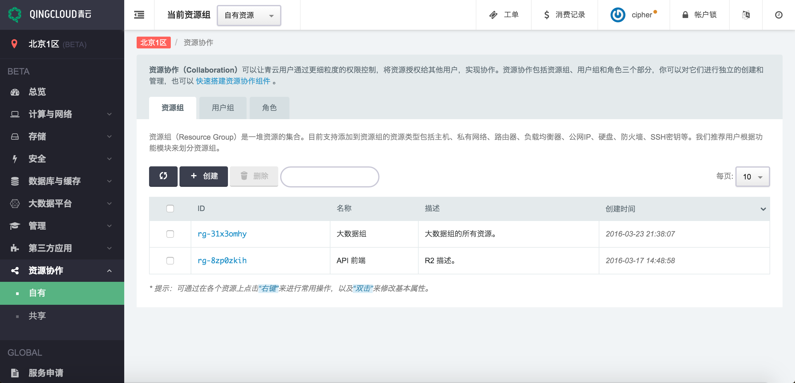 通过 Collaboration ,可以让青云用户通过更细粒度的权限控制,将资源授权给其他用户,实现管理和协作。