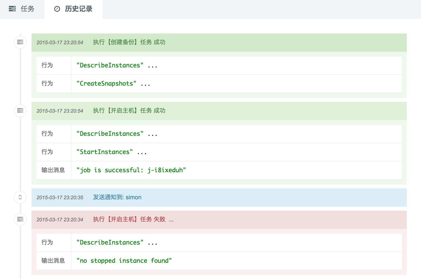 当到达设定好的执行时间时,多个任务会同时开始执行。每个任务在执行后都会保留执行结果到历史记录中。