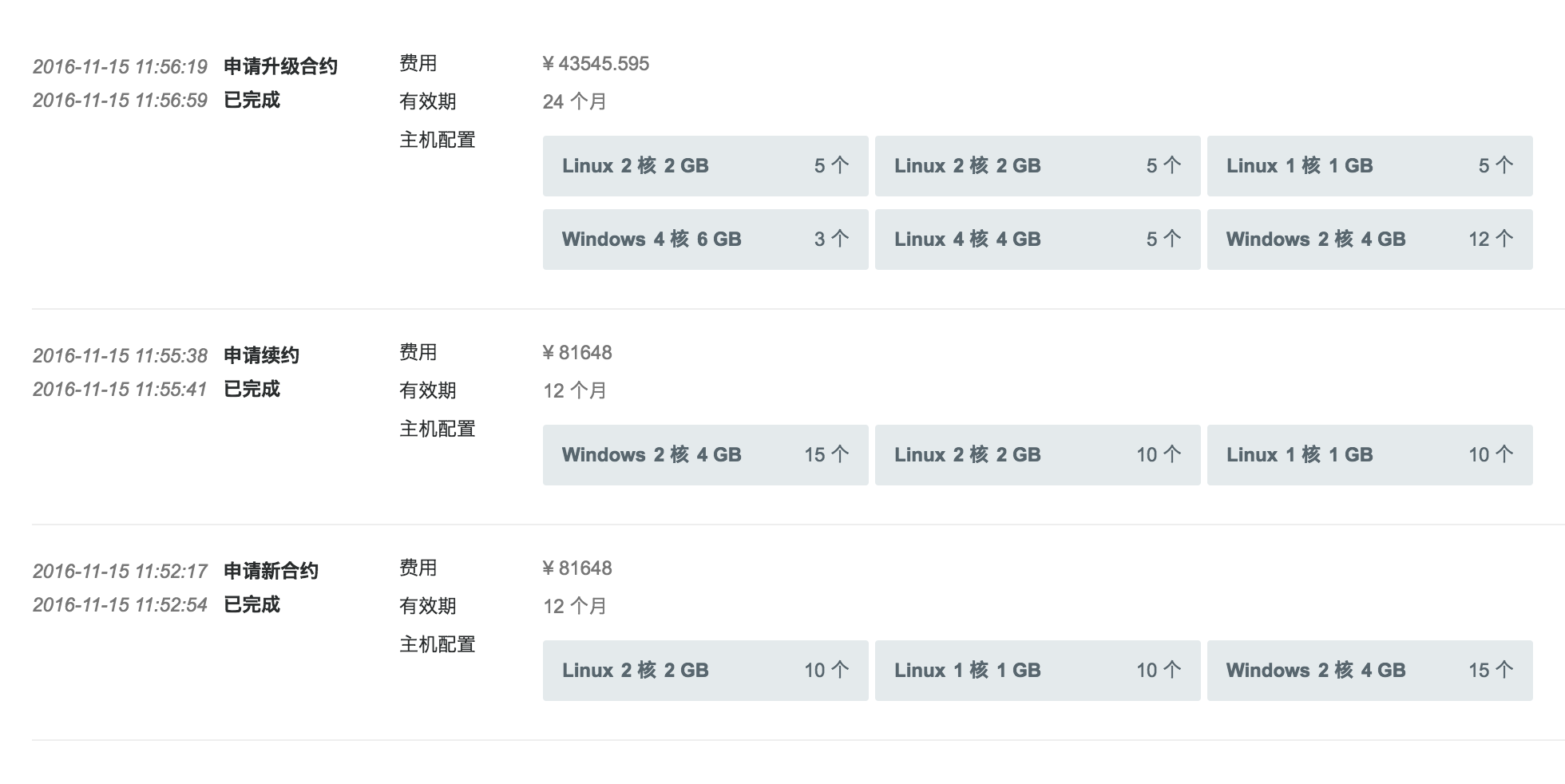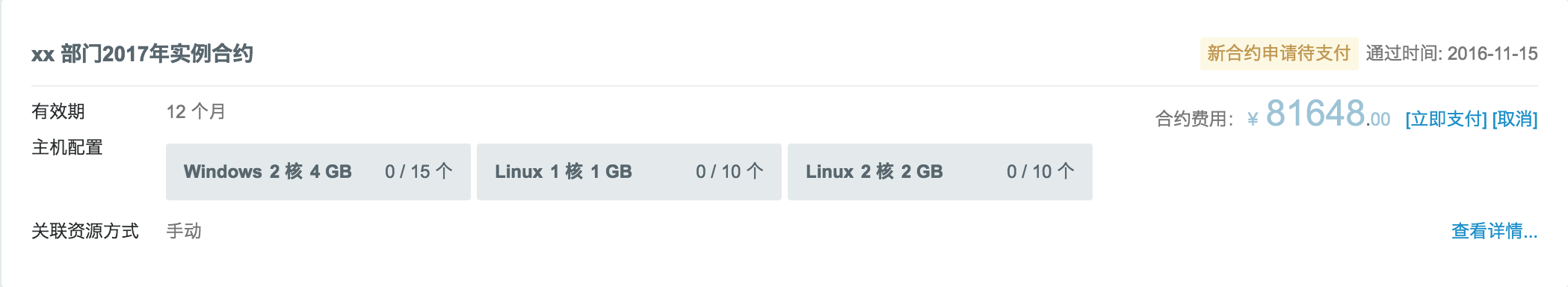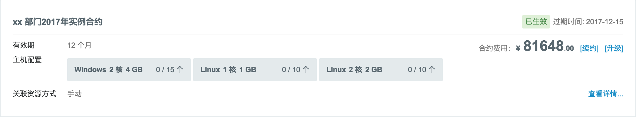另外,合约详情页面也支持直接创建相应配置的新实例(主机)并直接与合约绑定。