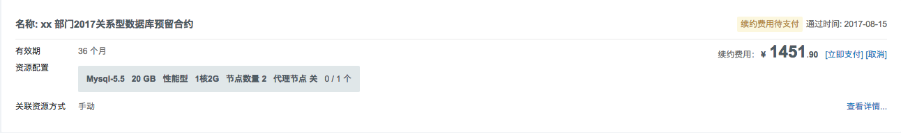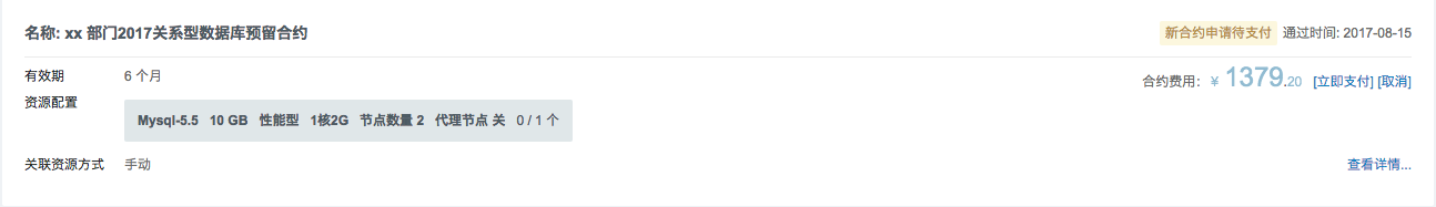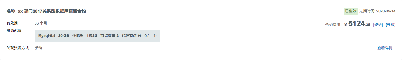 另外,合约详情页面也支持直接创建相应配置的新关系型数据库并直接与合约绑定。