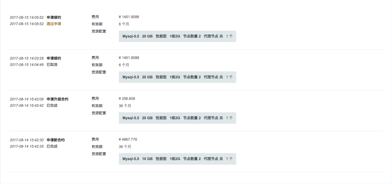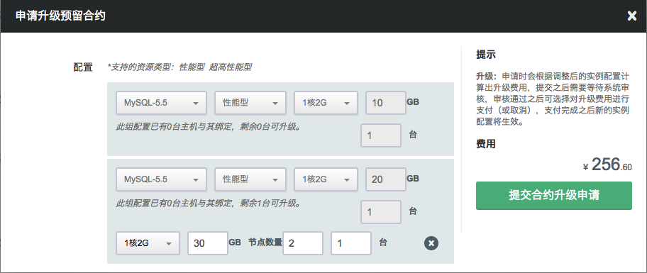当合约中的实例配置需要提高时用户可以提交升级申请。