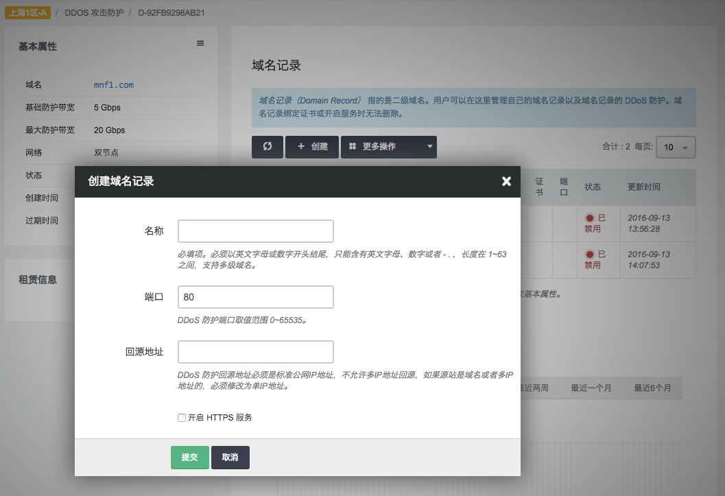 该域名是主域名 如:我们为 ddos.qingcloud.com 添加防护,他的主域名是 qingcloud.com 。