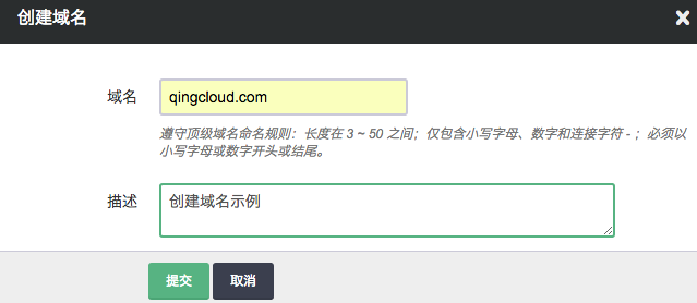 子域名指除去主域名的部分 如: ddos.qingcloud.com 中的 ddos