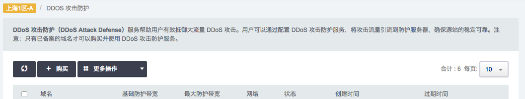 点击 CDN/防D服务 中的 DDoS 攻击防护 进入如下界面