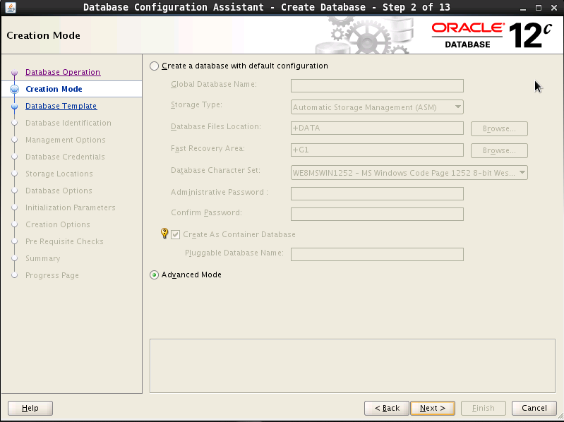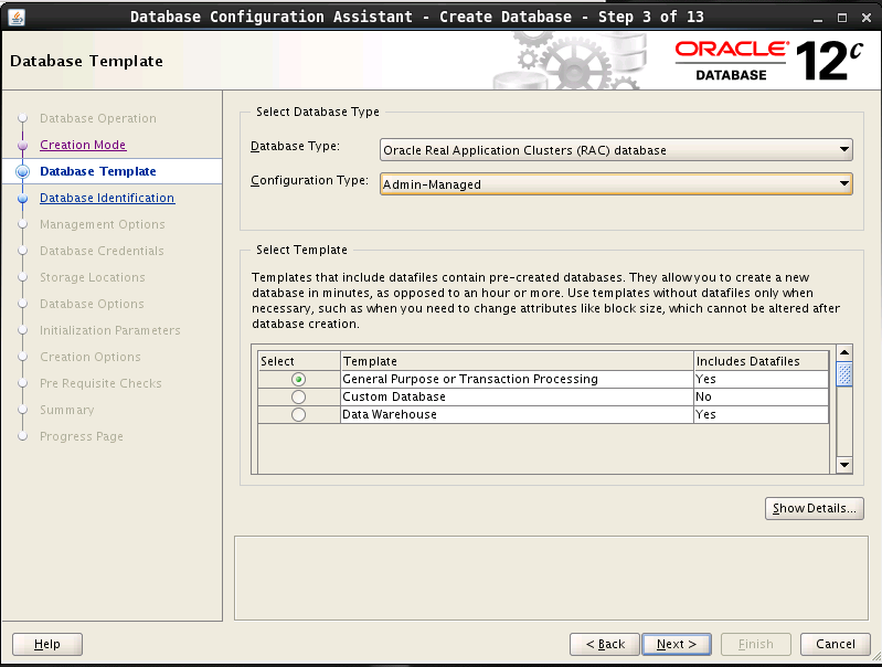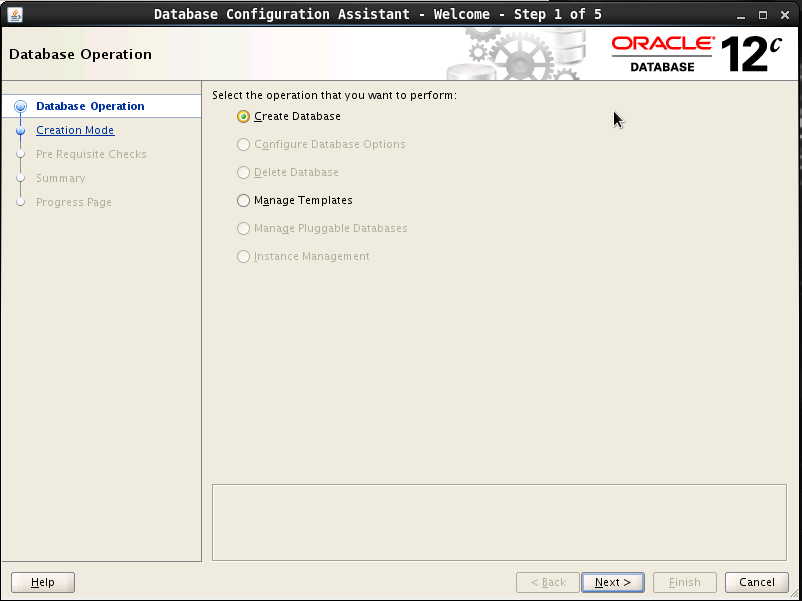 以oracle用户登录图形界面,执行dbca,进入DBCA图形界面