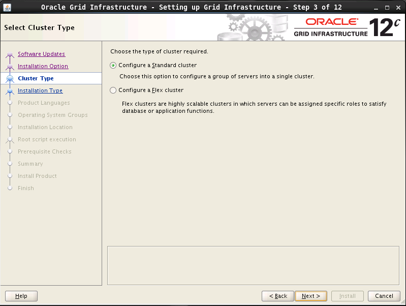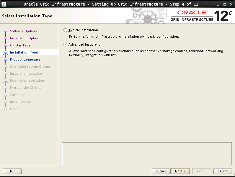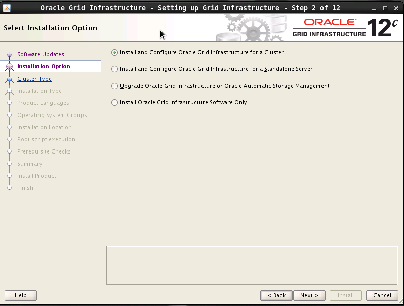 以grid用户登录图形界面,执行 “grid/runInstaller”进入OUI图形安装界面。请按以下截图选择: