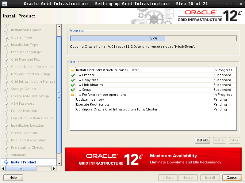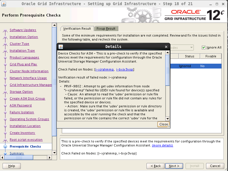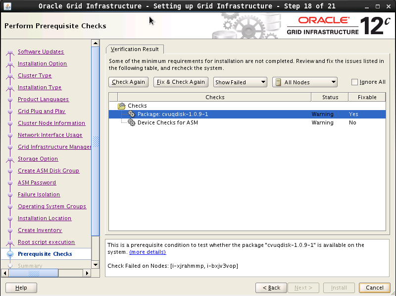 Press ENTER key to continue after execution of "/tmp/CVU_12.1.0.1.0_grid/runfixup.sh" has completed on nodes "i-xjrahmmp,i-bxjv3vop"