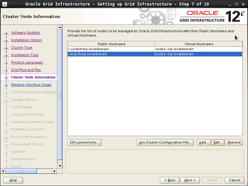 其中i-xjrahmmp和i-bxjv3vop是node1和node2的机器名。如果需要用自定义的机器名,请使用 *.localdomain的格式,比如: node1.localdomain